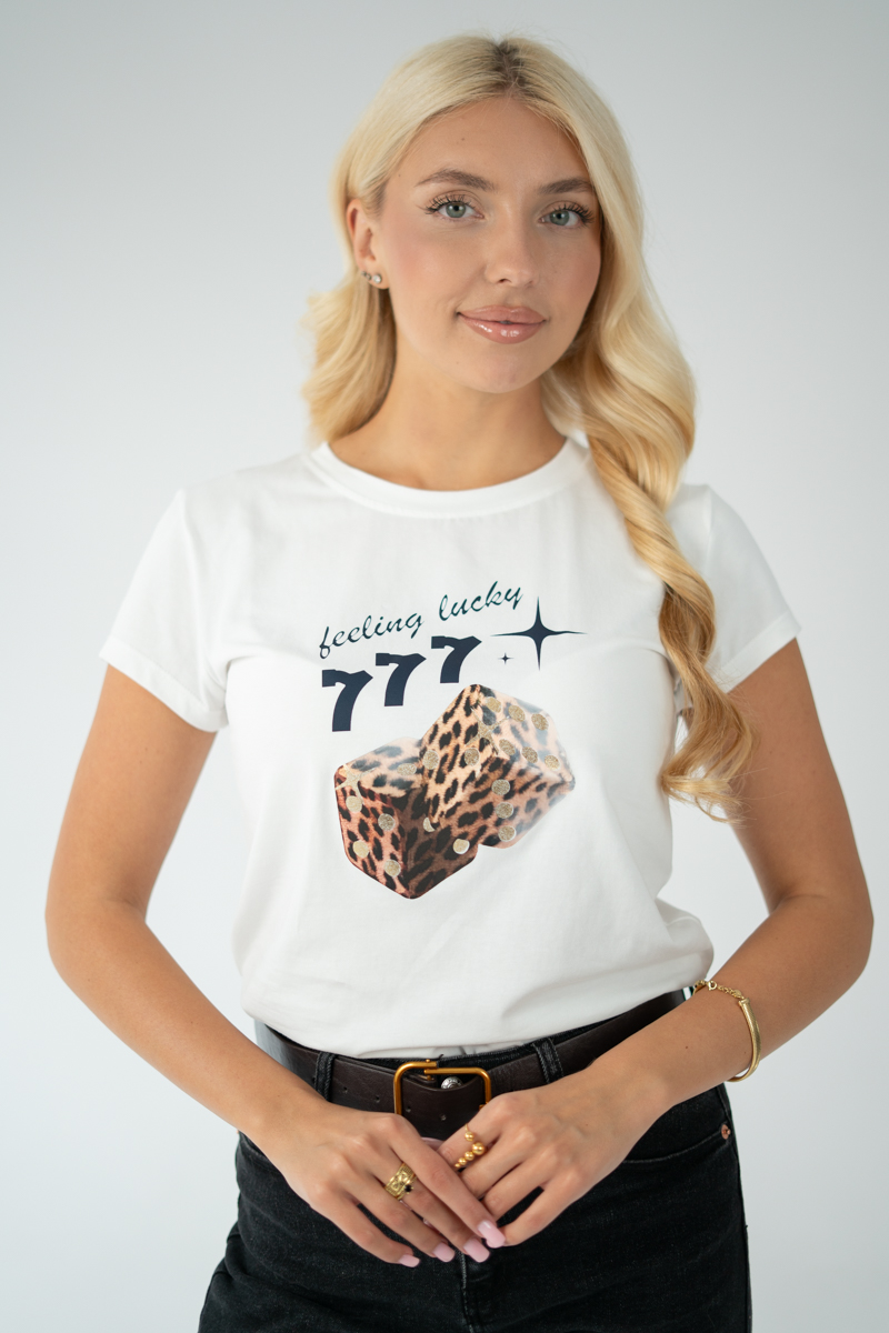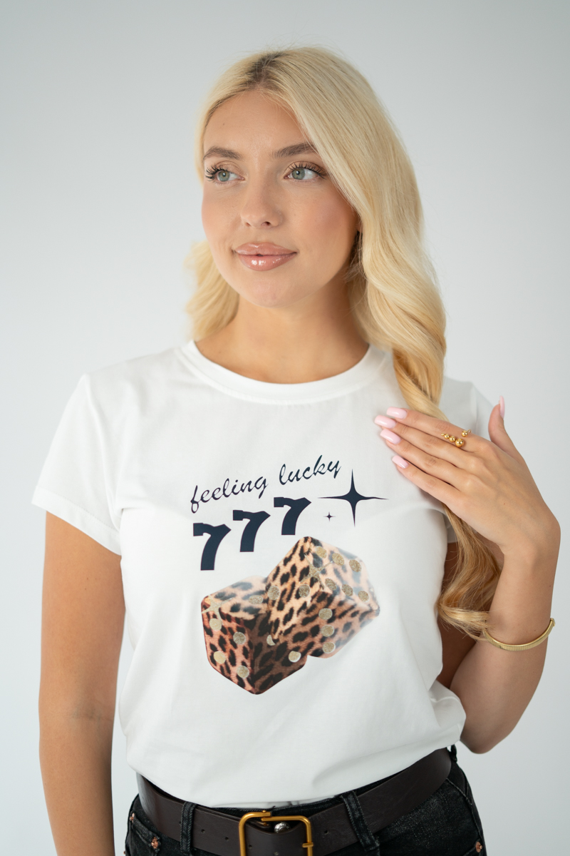 T-shirt damski kostki 777 Biały – Luckira