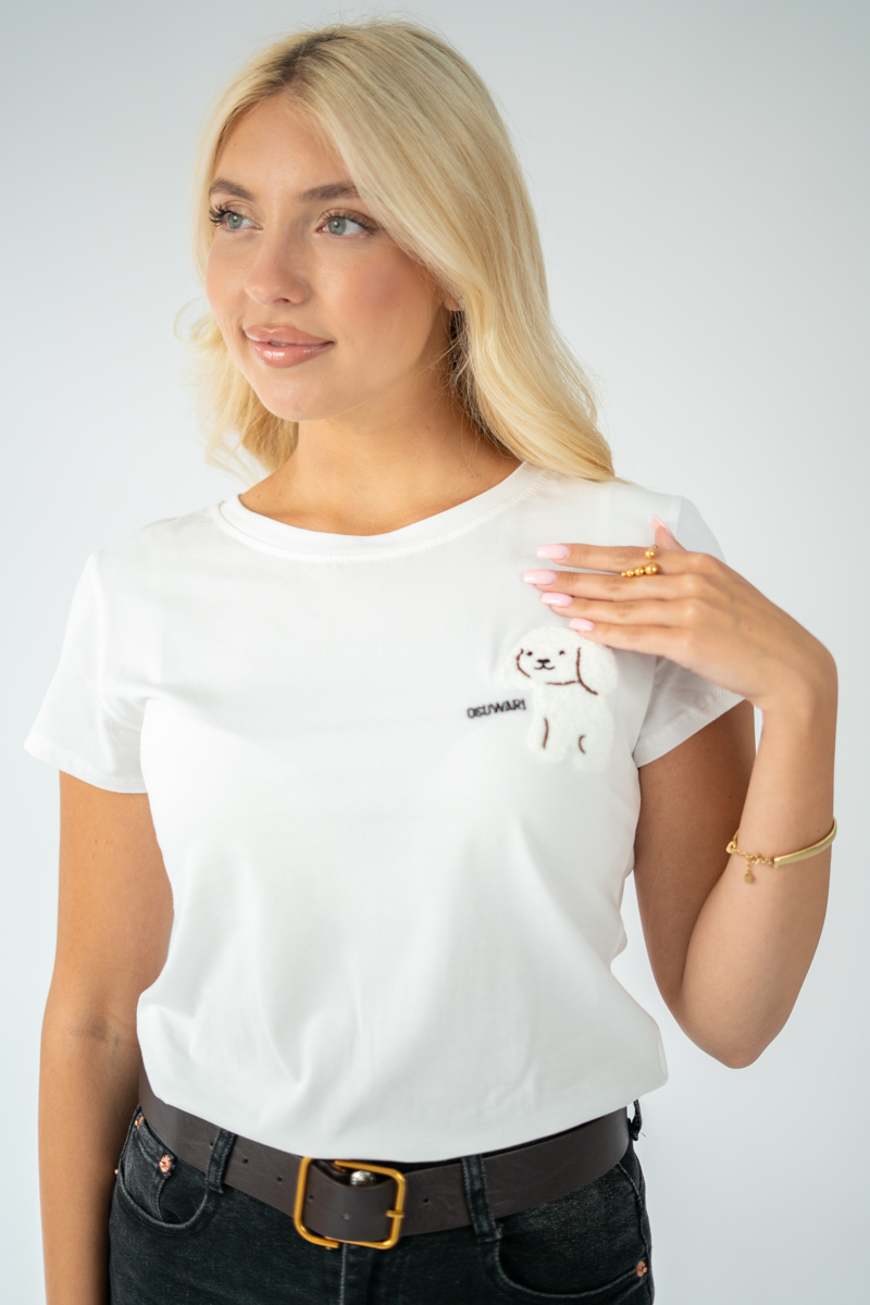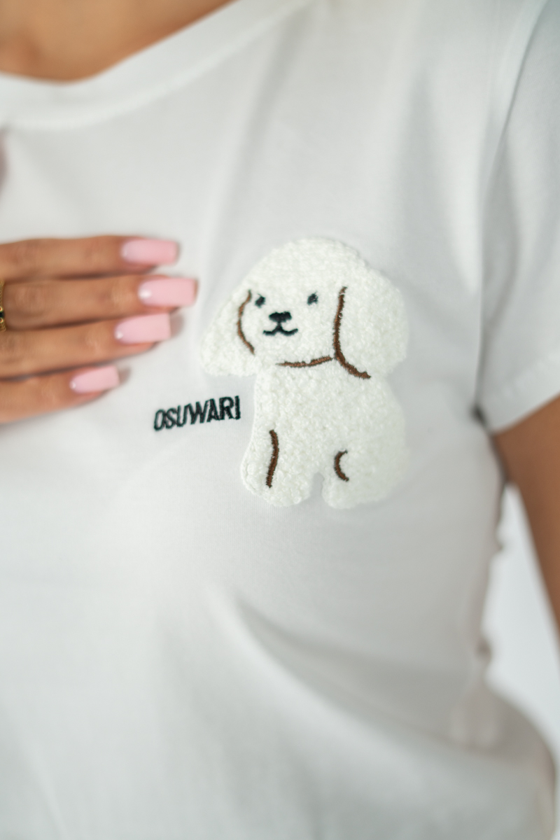 T-shirt damski z nadrukiem psa „Osuwari” to modna i pełna uroku propozycja na co dzień. Uszyty z tkaniny składającej się w 95% z bawełny i 5% elastanu, jest miękki, przewiewny i delikatnie elastyczny, dzięki czemu zapewnia komfort oraz dobre dopasowanie do sylwetki. Klasyczny fason z okrągłym dekoltem sprawia, że koszulka pasuje do wielu stylizacji, a nadruk z sympatycznym motywem psa dodaje jej charakteru i oryginalności. To uniwersalny T-shirt, który świetnie sprawdzi się w casualowych zestawach z jeansami, szortami czy sportową spódnicą.