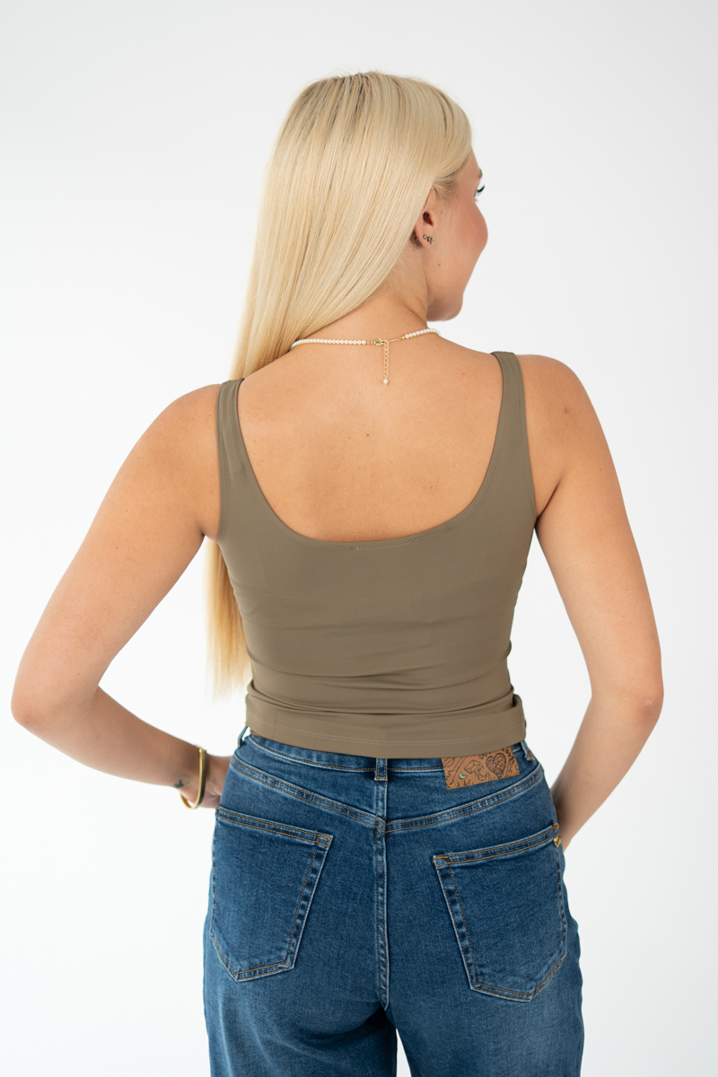Top elegancki dekolt zakładka Oliwkowy – Foldira