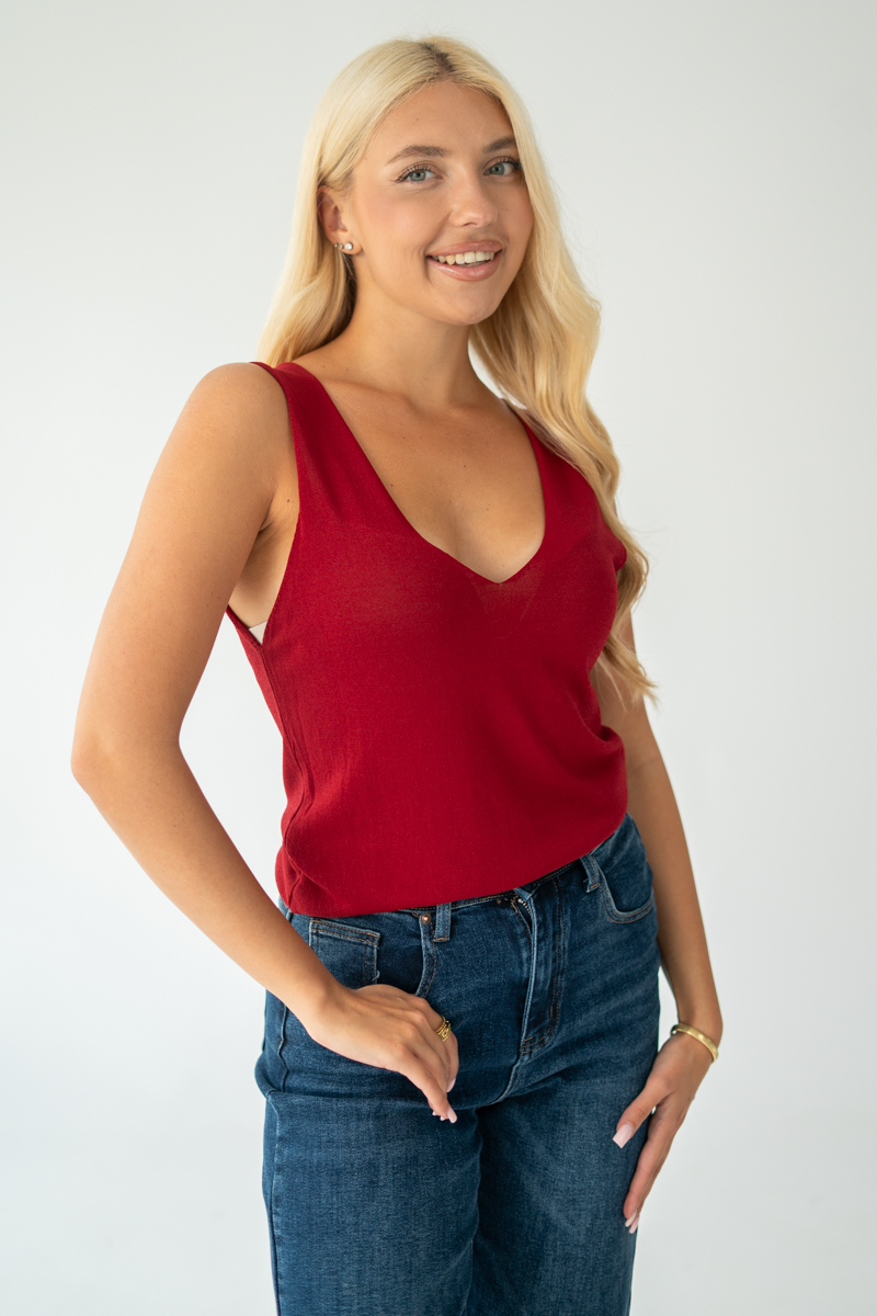 Top z wiskozy z dekoltem V Bordowy – Visolynne