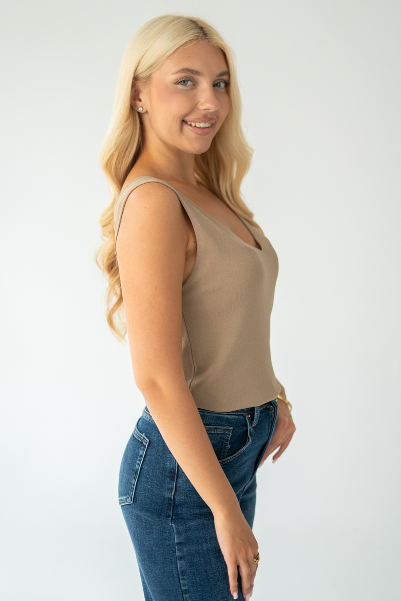 Top z wiskozy z dekoltem V Piaskowy – Visolynne to uniwersalny i elegancki element garderoby na każdą okazję. Uszyty z lekkiej i przewiewnej wiskozy, gwarantuje komfort noszenia i delikatne dopasowanie do sylwetki. Klasyczny krój na ramiączkach oraz dekolt w kształcie litery V podkreślają kobiecy charakter. Stonowany piaskowy odcień sprawia, że łatwo łączy się z jeansami, spódnicą czy marynarką, tworząc stylowe i ponadczasowe zestawy.